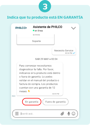 Si tu garantía está vigente, escribinos la palabra Garantía por WhatsApp o Webchat para poder ayudarte a gestionar tu caso.